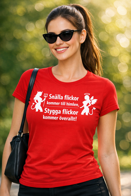 Rolig t-shirt: Snälla flickor kommer till himlen, stygga överallt!