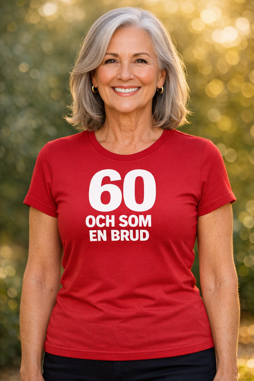 En kaxig, rödfärgad statement-tee med tydlig vit text som hyllar 60 med humor och attityd – perfekt när du fortfarande äger dansgolvet.