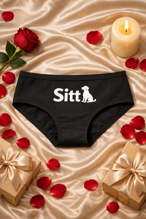 “Sitt” är inte bara ett klassiskt hundkommando – här blir det en kaxig, lekfull detalj som gör vardagen lite roligare. Den svarta designen med vit text och hundsilhuett är både charmig och lagom busig.