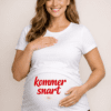 En bekväm och snygg gravid-t-shirt i svart med vit text som låter magen göra en tydlig (och charmig) nedräkning: jag kommer i december.