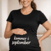 När alla frågar om BF kan din t-shirt svara åt dig. Den svarta modellen med trycket Kommer i augusti gör din gravidnyhet tydlig, charmig och superfotogenisk – utan långa förklaringar.