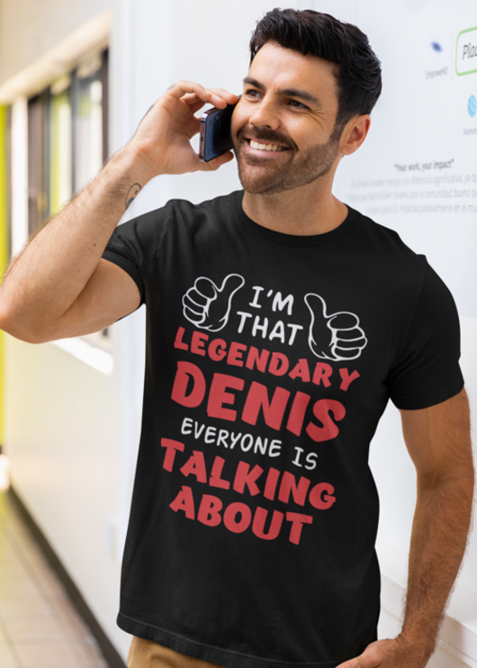 😎 Kliv in som vanlig dödlig, gå ut som legend: I’M THAT LEGENDARY DENIS EVERYONE IS TALKING ABOUT! Den här svarta T-shirten med vitt och rött tryck säger tydligt vem alla snackar om. När du tar på den kommer skratt och komplimanger av sig själva.