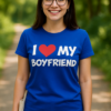 💙 När din outfit säger: MY BOYFRIEND ❤️’S ME – utan att du ens behöver öppna munnen! Denna kungligt blå dam-T-shirt med korta ärmar, vit text och ett rött hjärta med svarta linjer är en ren dos självsäkerhet och humor. Berätta för världen vem som är din fan nr 1 – i en stil som inte går att missa.