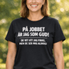 En svart t-shirt med ett stilrent vinglas och den klockrena texten INGET VITAMIN, ÖVER EN LITER VIN – perfekt när du vill bjuda på humor utan att säga ett ord.