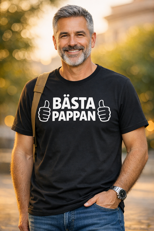 En svart tee med ett budskap som säger allt: BÄSTA PAPPAN. Sitter lika bra till vardags som vid grillen och levererar både stolthet och humor – helt utan att du behöver säga ett ord.