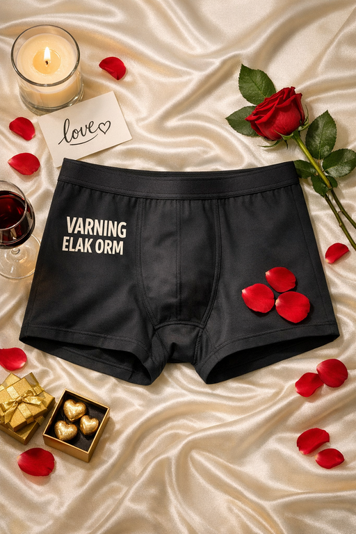 När orden tar slut säger trycket allt: VARNING ELAK ORM. Svarta boxershorts med kaxig humor och självsäker vibe – perfekta för dig som gillar att bjuda på ett leende.