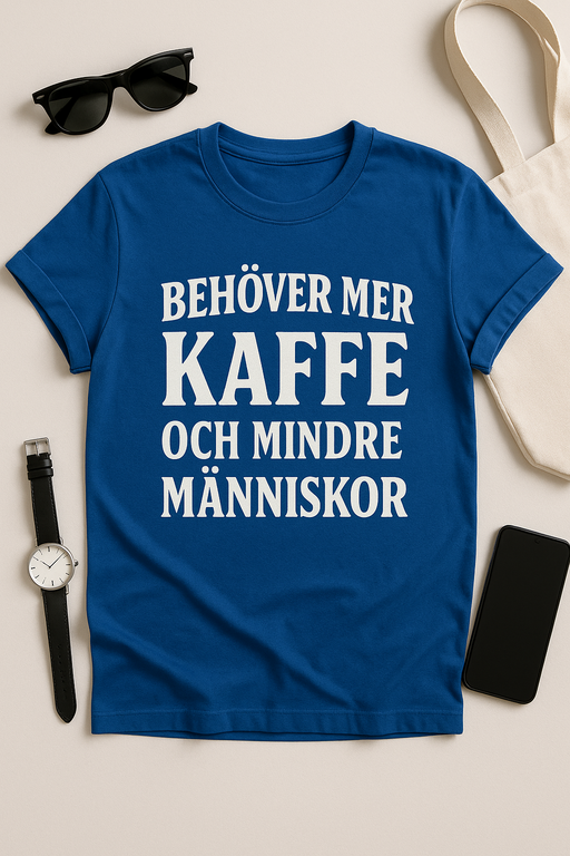 Trött på småprat? Låt din garderob tala! Vår ’Behöver mer kaffe och mindre människor’-T-shirt är det perfekta plagget för kaffeälskaren med noll tålamod för mänsklig kontakt före första koppen. Mjuk, stilren och fylld med passiv-aggressiv charm – precis som du gillar det. Perfekt för hemmakontoret, fikarasten eller när du helt enkelt inte orkar förklara varför du muttrar åt folk på bussen. Brygg en kopp och klicka hem din nya favorit-Tee idag!