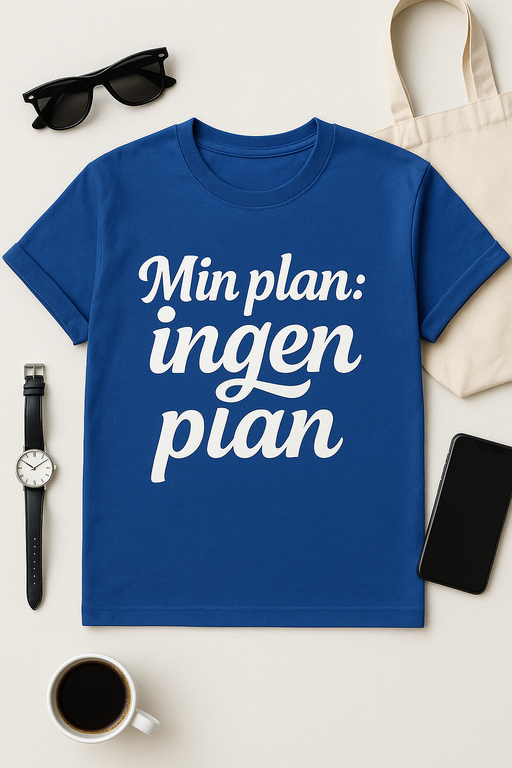 Trött på femårsplaner och Excel-ark? Då är vår ’Min plan: ingen plan’-T-shirt som gjord för dig! Denna humoristiska och avslappnade T-shirt är för dig som föredrar att ta dagarna som de kommer – kanske med en kaffe i handen och ett leende på läpparna. Tillverkad av mjuk, högkvalitativ bomull är den lika bekväm som din improviserade vardag. Perfekt för festivaler, hemmamys eller alla tillfällen när du vill signalera: ’Jag löser det när jag kommer dit.’